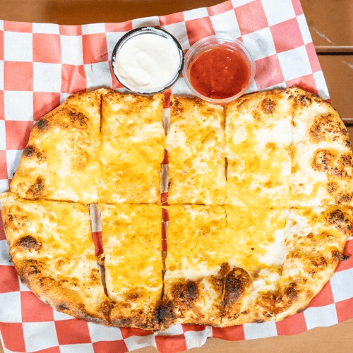 Garlic sauce, mozzarella, cheddar cheese, and a side of marinara